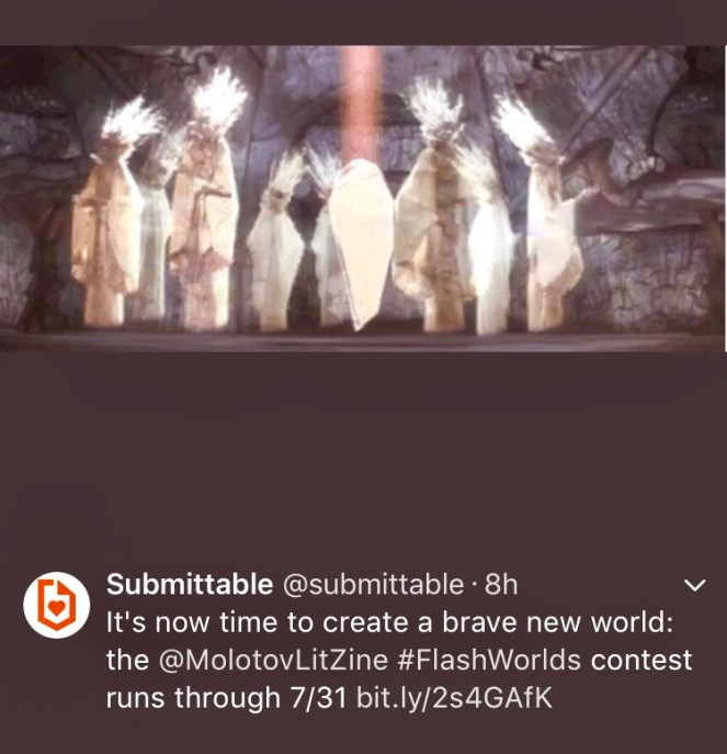 Literary Create a brave new world… June 21, 2017June 27, 2017 M Lenoir Bond Enter to via via The Molotov Cocktail: Flash Worlds